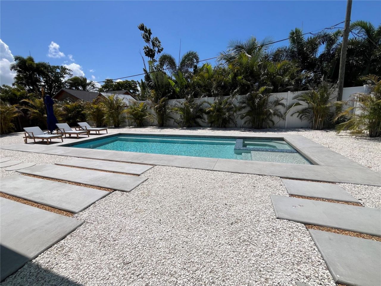 Welcome home to the heart of Sarasota's Southgate neighborhood! This stunning, fully rebuilt residence blends modern comfort with timeless appeal. Featuring 3 bedrooms 2.5 baths, the home showcases a bright open-concept floor plan with 10 ft.ceilings creating a light and bright atmosphere throughout. The impressive kitchen features custom soft-close cabinetry, premium appliances, a dedicated bar area, and a spacious breakfast bar ideal for casual gatherings. The master bedroom has a spa inspired bathroom with generous closet space. Sliding doors throughout this lovely home invites you outdoors to your private oasis. The maintenance-free yard features a sparkling heated large pool and spa enhanced with a sunshelf. The shaded patio is perfect for relaxing and casual entertaining. Lush landscaping provides complete privacy enclosed by a full fence for your pets enjoyment too. Southgate is a well renowned sought after area located in the Southside School district, just a few minutes from Sarasota Memorial Hospital,down town area, and the beach. This amazing house could be your.....Home sweet Home